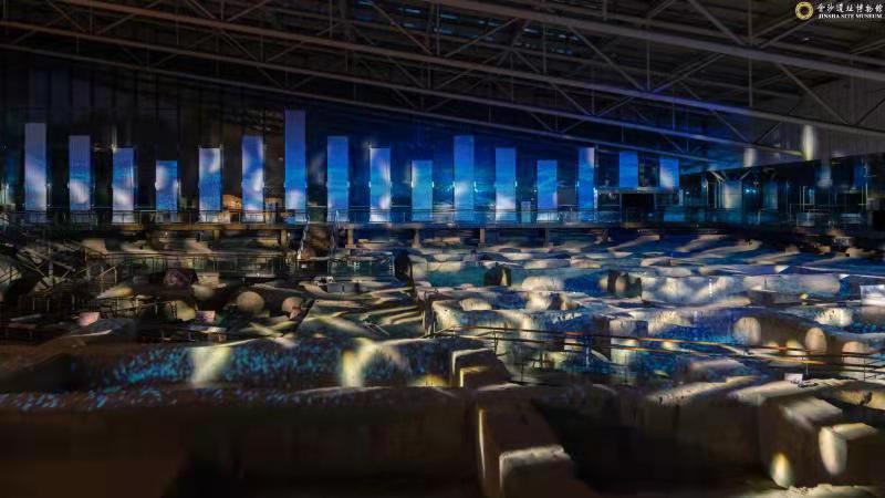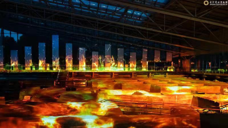“金沙之光”主题光影秀(金沙遗址博物馆志愿者张艳摄)