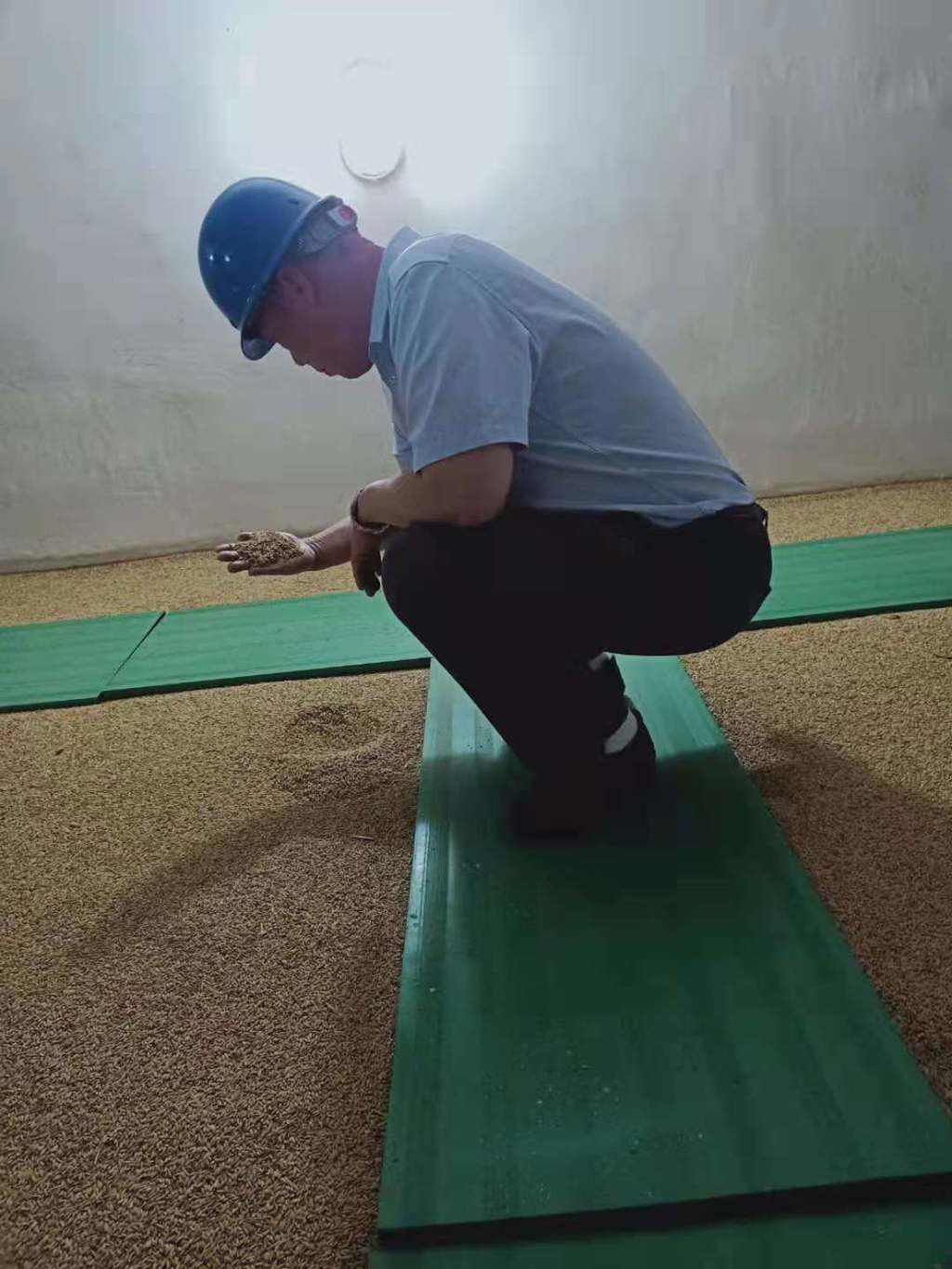 8月31日早上8点半,唐平头戴蓝色安全帽,准时出现在公司的粮库内。进仓查粮是他每天的主要工作。