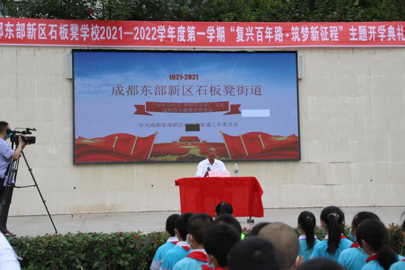 9月1日,成都东部新区石板凳街道在石板凳学校开展“开学第一课—党史学习教育进校园”宣讲活动,2000余名师生在开学第一天聆听一场生动又贴近的党史学习教育宣讲。