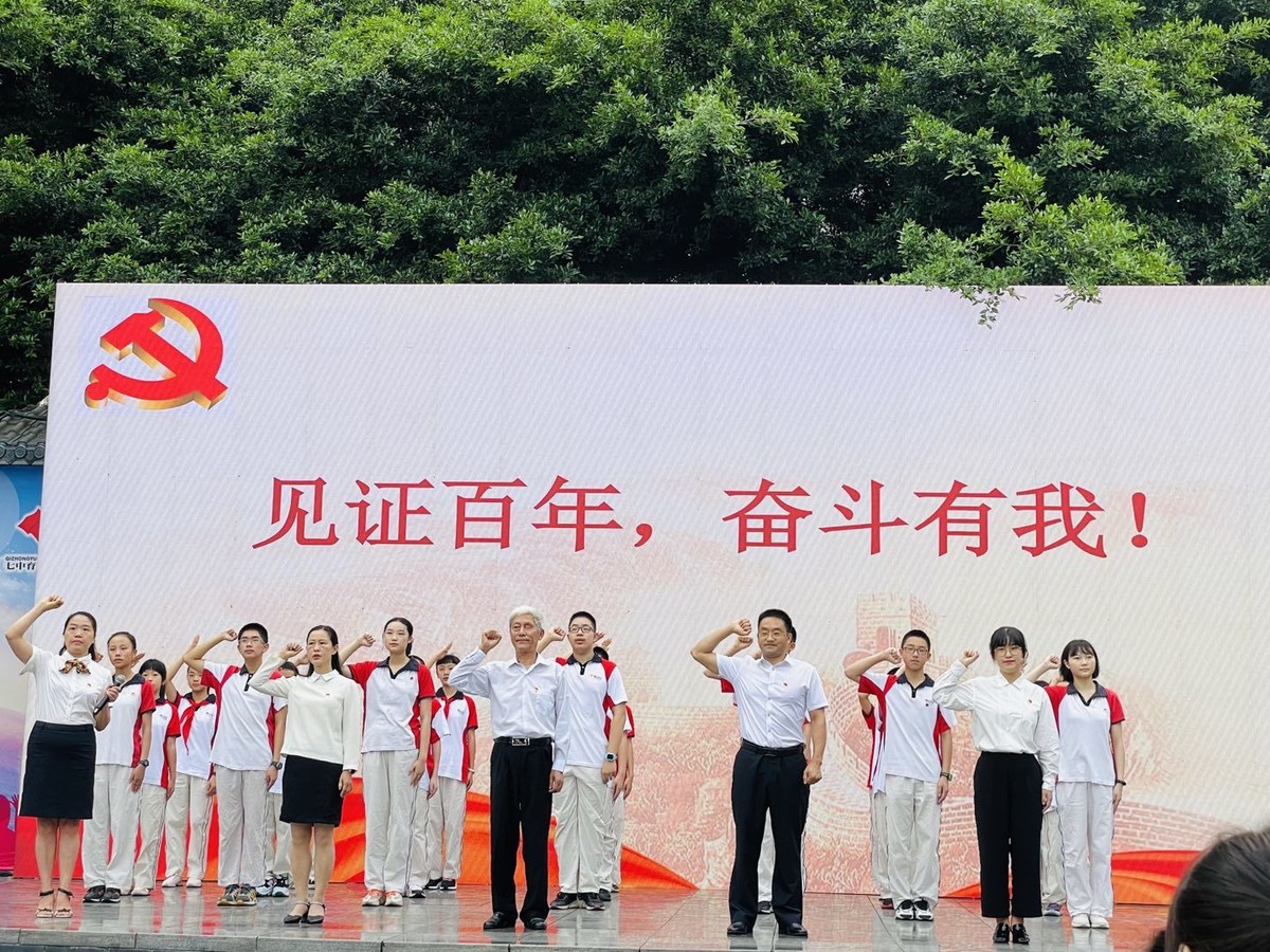 七中育才学道分校党员教师、团员、少先队员共同宣誓。学校供图