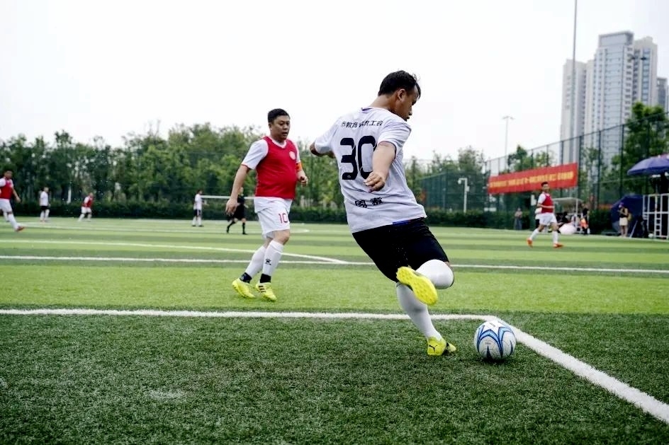 在率先开始的季军争夺战中,市教育工会和中电天奥展开交手。市教育工会有女足球员参赛,中电天奥队伍中有多位来自四川大学和电子科技大学的毕业生,2支队伍的参赛人员构成是本次赛事多样性的缩影,来自各领域的参赛人员齐聚一堂,以足球为媒介展开交流。