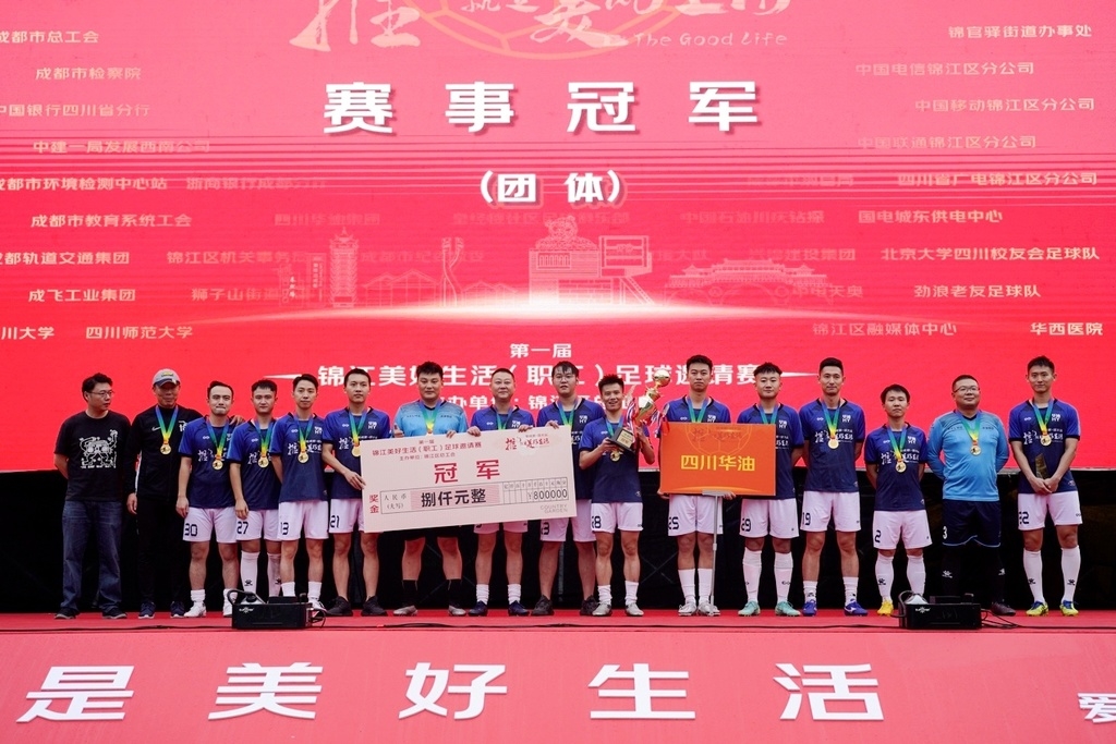 历时近2个月,全市32支参赛队伍,64场鏖战,8月28日下午,由成都市锦江区总工会、锦江区文体旅局联合主办,成龙路街道办事处、成龙路街道工会联合会承办的“推门就是美好生活”“爱成都·迎大运”第一届锦江美好生活(职工)足球邀请赛在成都落幕。最终,华油集团代表队夺冠。