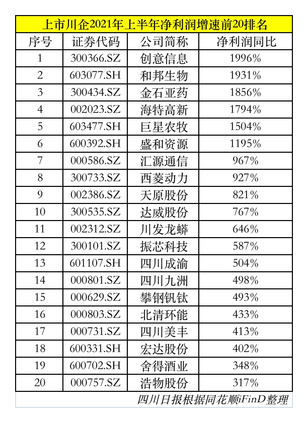 上市川企不仅营收高,赚钱能力也不俗。从利润看,上半年上市川企净利润高达427.53亿元,这一数据远远高于去年同期。