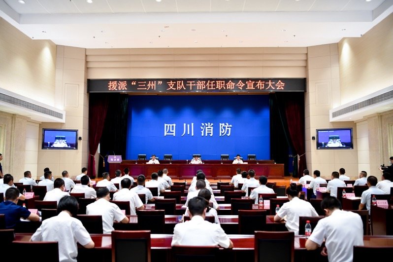 9月2日,四川省消防救援总队举行援派“三州”支队干部任职命令宣布大会。本次干部援派计划是全省消防救援队伍改革转制后,首次开展的赴阿坝、甘孜、凉山支队干部援派工作,并首次接受省外消防救援队伍援助。