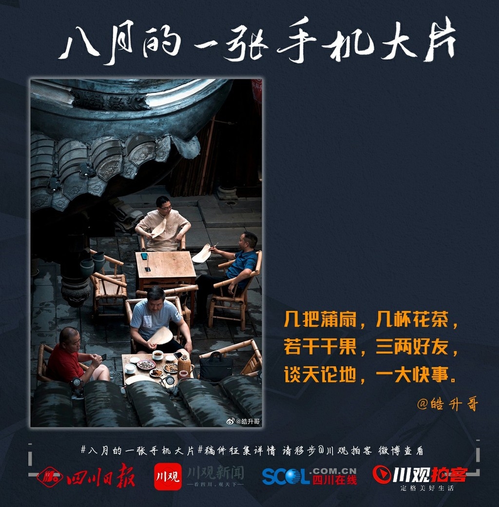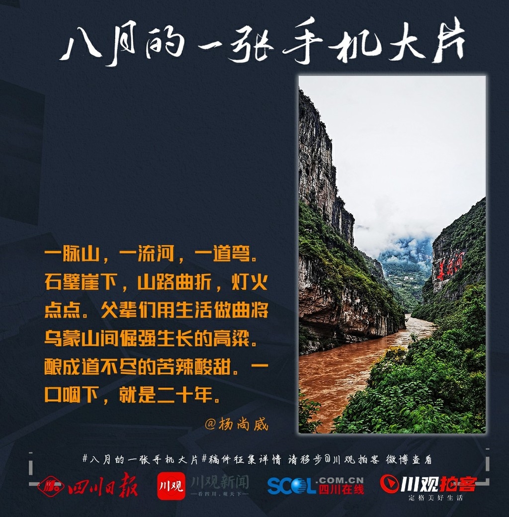 上个月,@川观拍客 联合@四川日报 向拍客们“借用”了100张他们#八月的一张手机大片#,一起来分享每张照片背后的故事。各地的声音,各处的风景,体会你不一样的心情。