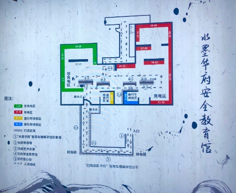 四海逸家小区还采用了水墨画的视觉风格装饰车棚,配备安全消防器具角,与院落居民、儿童互动,让安全教育知识教育易接受、沉浸式。
