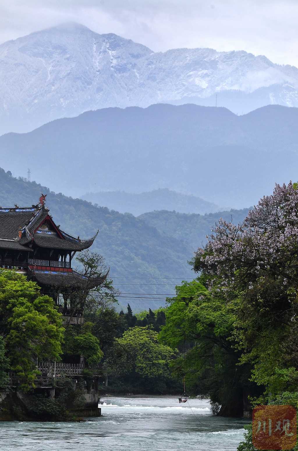 在成都339天府熊猫塔远眺四姑娘山幺妹峰