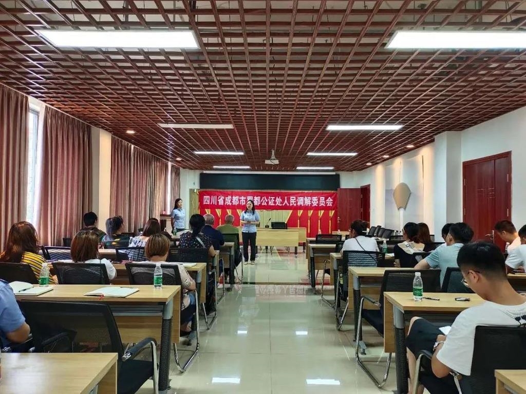 为了缓解社区的工作压力,把矛盾纠纷化解在萌芽状态,蜀都公证处的公证员下沉社区,挂牌成立了调解工作室,与社区组织联手探索社区矛盾纠纷化解、社区治理新模式,为群众提供公证服务、法律咨询、政策法规解读等公益性综合法律服务,当起了矛盾纠纷的“预防针”和“灭火器”。