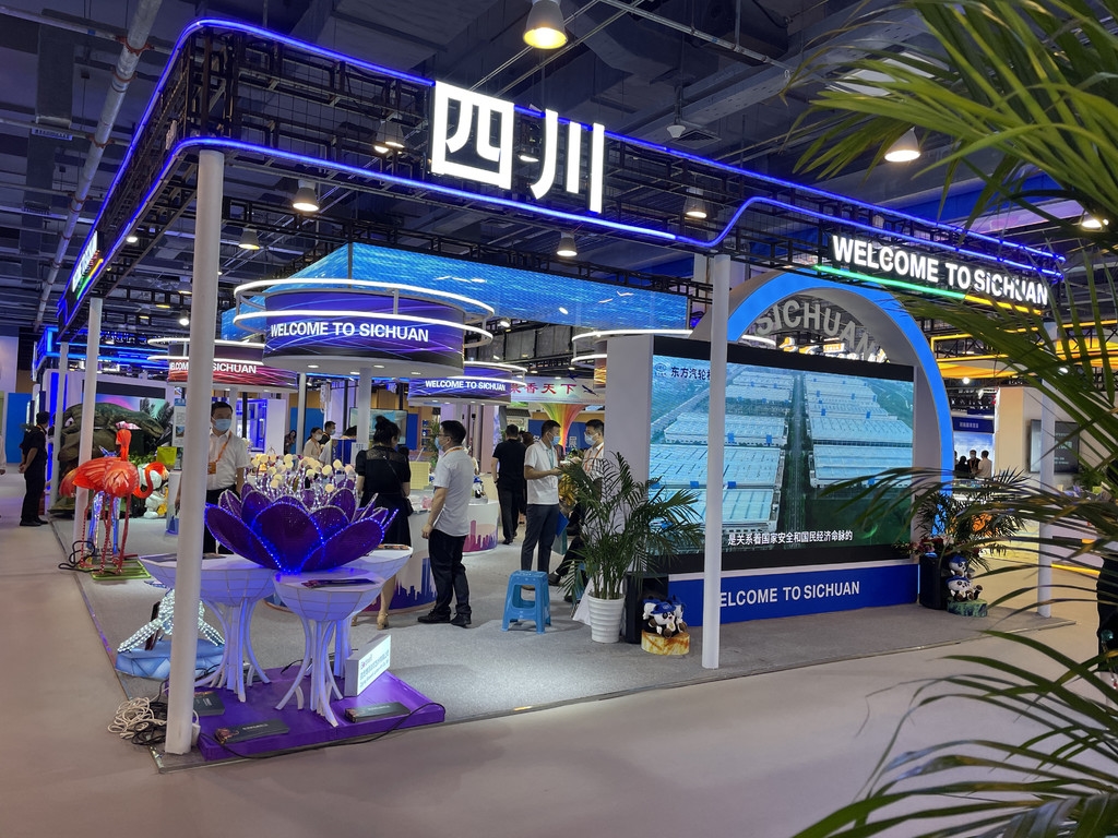 9月2日到7日,2021中国国际服务贸易交易会在北京国家会议中心和首钢园举办。在3日首次对外开放的展场内,以蓝色为基调的四川馆惊艳亮相,吸引了不少专业观众观展。