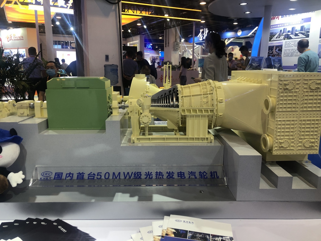 此次东汽带来参展的国内首台50MW级光热发电汽轮机和国内首台再热垃圾发电汽轮机仿真模型,相较于其传统的火电风电机组等拳头产品来说,算是“轻量级”选手,但却是东汽准备在未来几十年内瞄准清洁能源、碳中和等领域转型的核心产品。