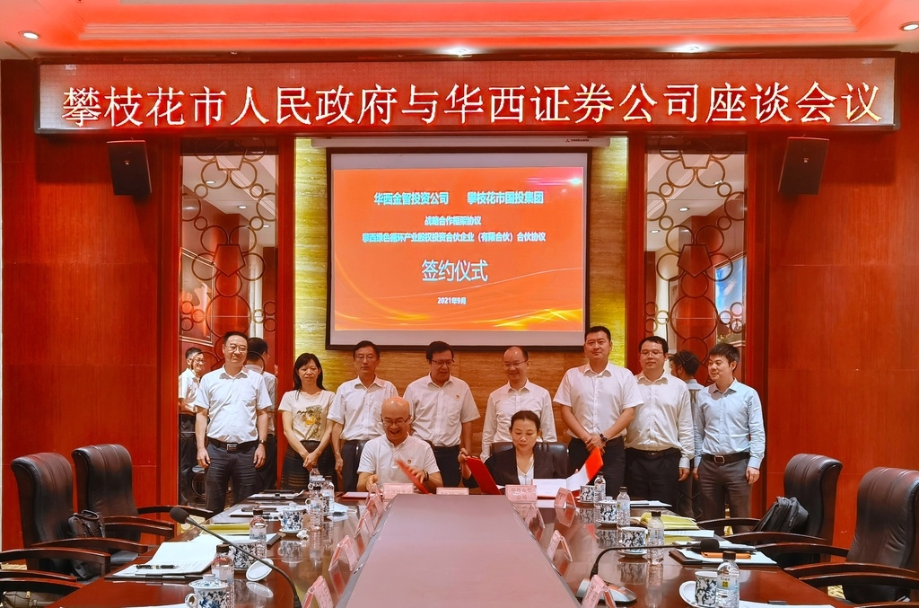 9月3日,四川在线记者从攀枝花市人民政府与华西证券公司座谈会议获悉,攀枝花市国投集团与华西证券旗下子公司——华西金智投资公司成功“牵手”,双方将共同发起设立总规模10亿元的绿色循环产业基金群,并首期注册设立总规模为2亿元的攀枝花绿色循环产业投资基金,构建绿色循环产业链。
