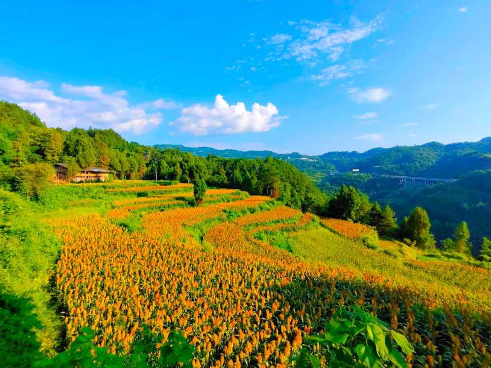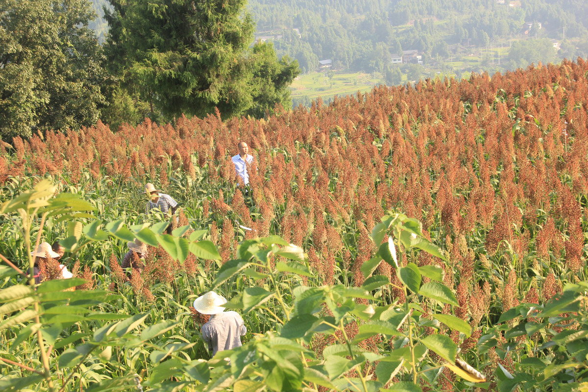 高粱是酿酒的主要原料之一。今年以来,平昌县电商产业园管委会积极探索发展集体经济,在所辖的大宁和桥沟两个社区,利用撂荒地、边坡地共发展种植了270余亩红梁。