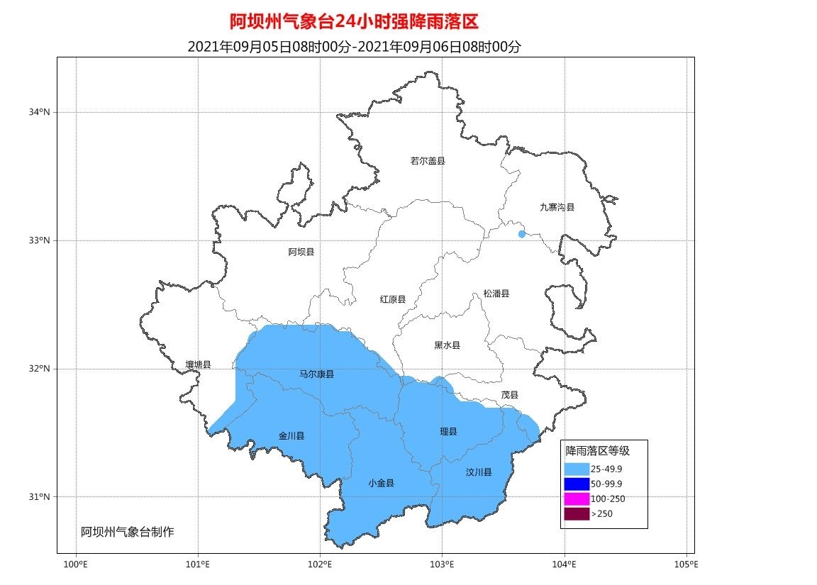 9月5日清晨,阿坝州气象台发布暴雨蓝色预警。
