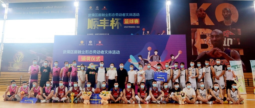 9月5日下午,由成都市武侯区总工会主办,四川顺丰速运有限公司承办的2021年武侯区新就业形态劳动者文体活动——“顺丰杯”篮球赛在成都海德体育中心落下帷幕。