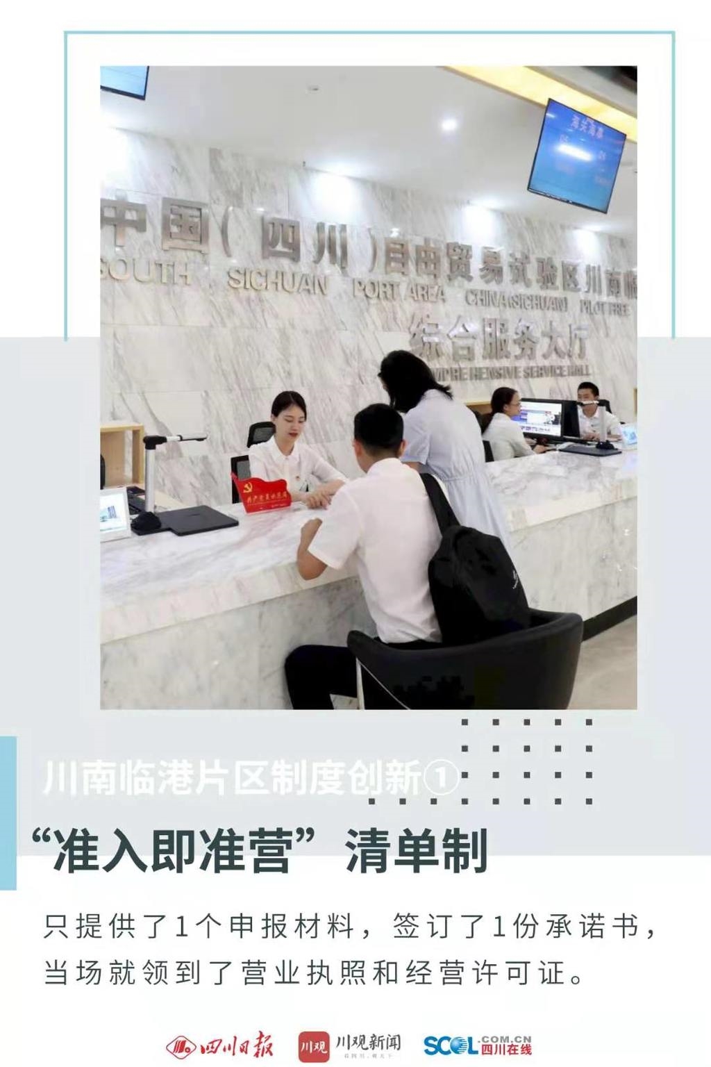 李倩茹所说的“准入即准营”清单制,是由四川自贸区川南临港片区于2019年11月,在全省率先试行推出的制度创新成果。该项成果,也在今年7月被纳入《中国(四川)自由贸易试验区(协同改革先行区)第五批可复制可推广制度创新成果》中,在全省范围内复制推广。