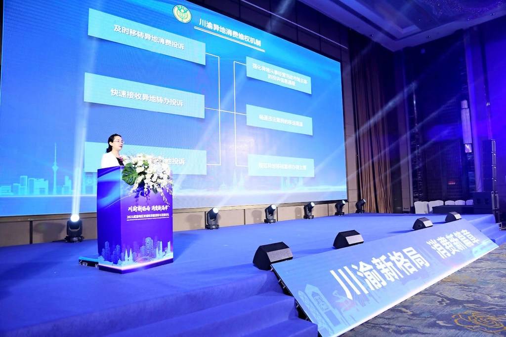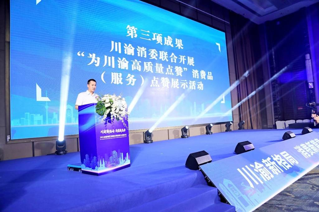 9月6日,以“川渝新格局,消费新篇章”为主题的“2021成渝地区双城经济圈消费与发展论坛”在内江举行。论坛上,四川省市场监督管理局总经济师董若洁,重庆市市场监管局副局长、市消委会副会长徐军共同发布了一年来川渝两地消委组织的合作成果。