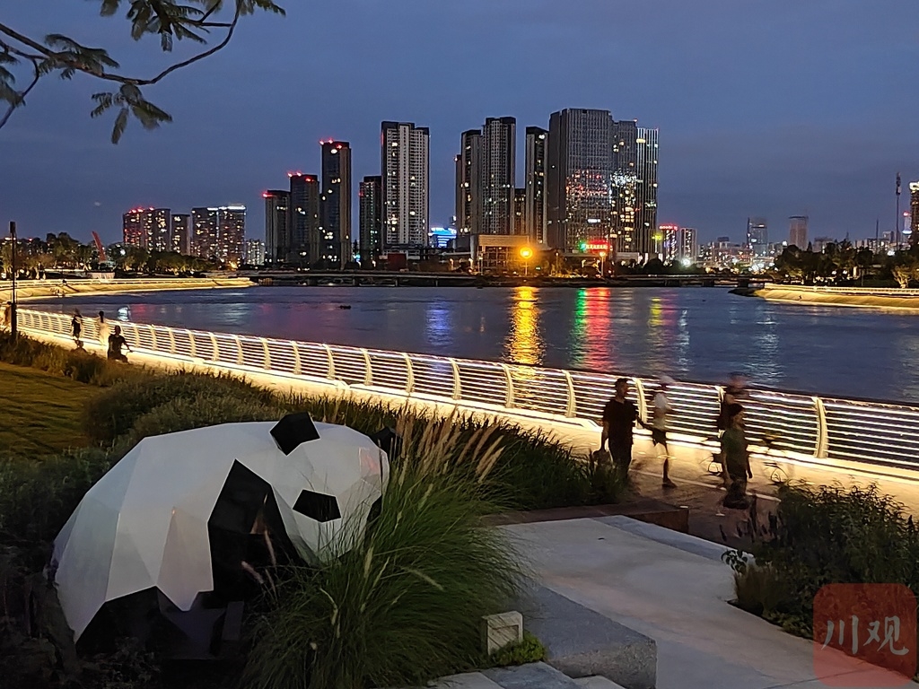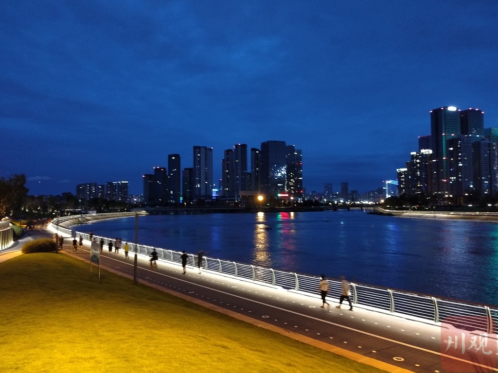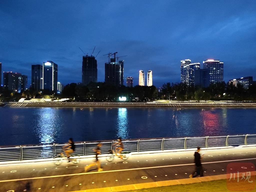 经过两岸绿化和建筑风貌提升,锦江河畔已成为成都新的网红打卡地,吸引了许多市民前来健身、游玩。