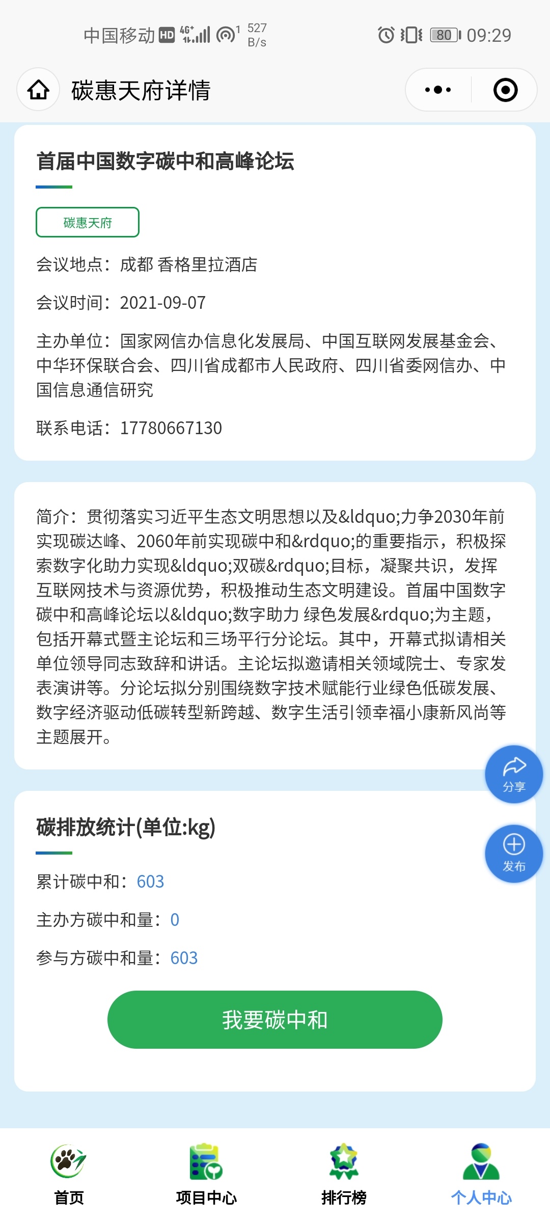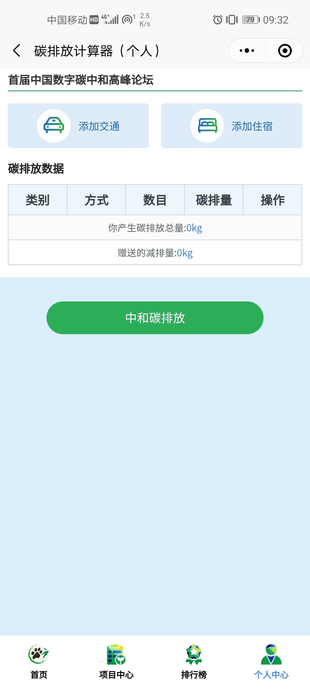 在论坛会场门外,记者看到了“点点碳中和”平台入口二维码,注明“扫码实现峰会碳中和”。记者扫码进入后看到了碳排放统计页面,点击“我要碳中和”菜单会出现一个本次论坛的“碳排放计算器(个人)”。