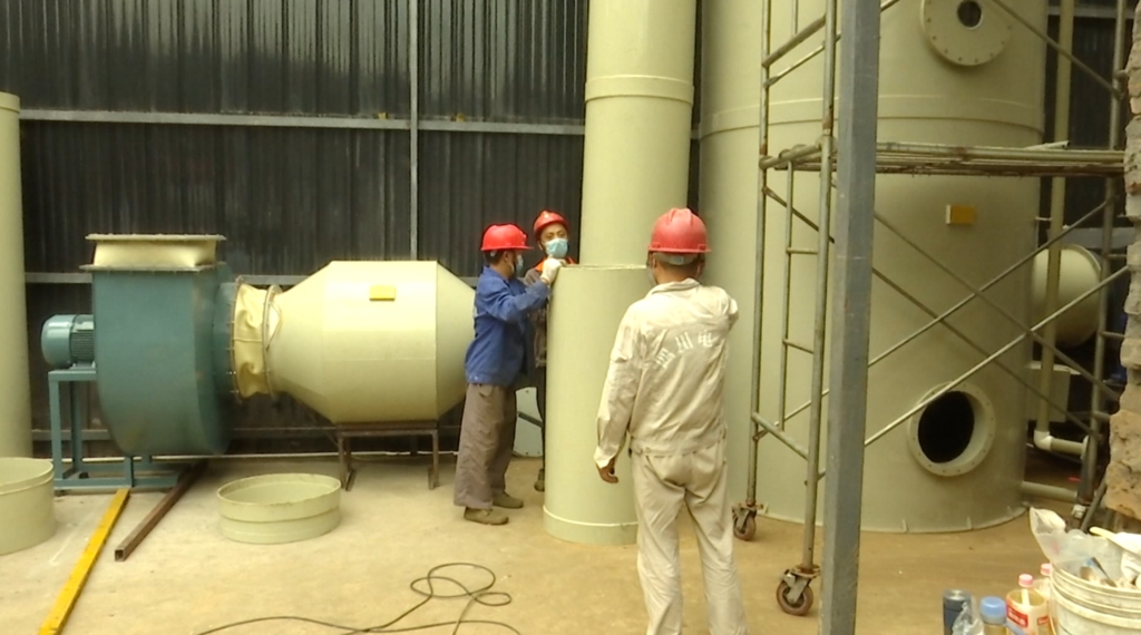 眉山百事康农业环保科技有限公司正在安装大功率除味喷淋设备。