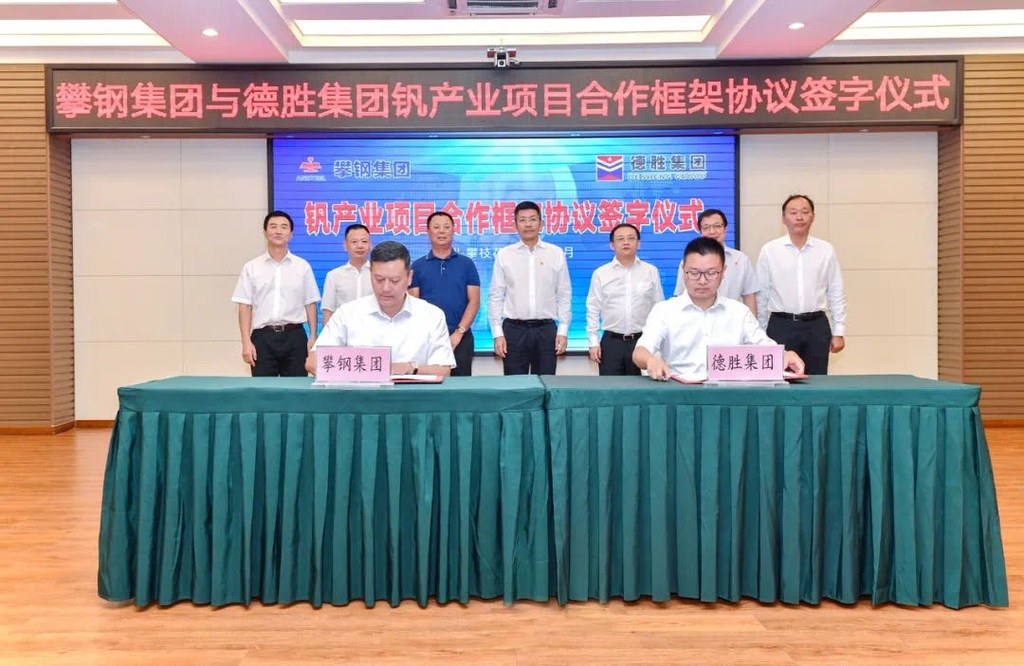 9月7日,四川在线记者从攀钢集团获悉,该集团于近日与四川德胜集团签订钒产业项目合作框架协议。去年6月,双方已签订战略合作协议,此次签约标志着双方战略合作迈入了更加紧密、更深层次、更高水平的新阶段。