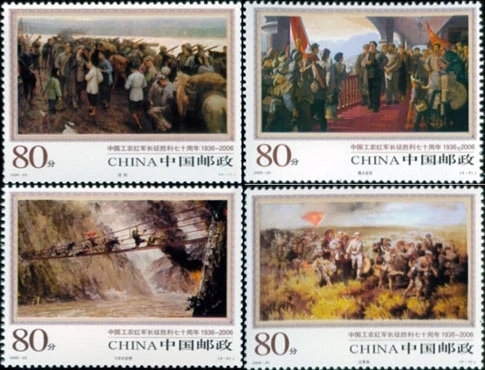 1935年,红军长征路上,22位勇士“猛打穷追夺泸定”,在桥上书写了英勇无畏的壮丽篇章,红军得以通过大渡河。2006年纪念红军长征胜利70周年,国家邮政局推出《中国工农红军长征胜利七十周年》纪念邮票,“飞夺泸定桥”就是其中一枚。