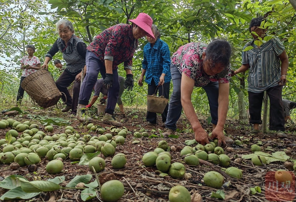 每年白露前后,是核桃开打的日子。9月6日,内江市东兴区双桥镇元觉村“惠耀”核桃种植基地,往日宁静的核桃园变得热闹非凡,村民们忙着采摘核桃。从采摘、到脱皮、到烘干装箱……从他们忙碌的身影就能看出,今年又是核桃丰收的一年。