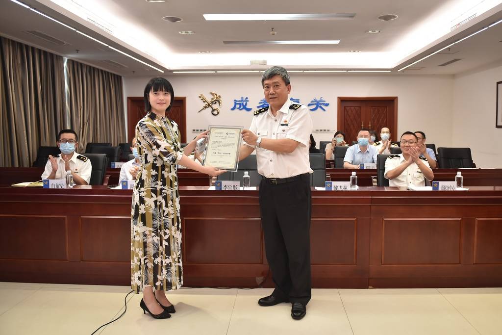 重庆海关向首家项目试点企业制授“电子口岸卡” 成都海关供图