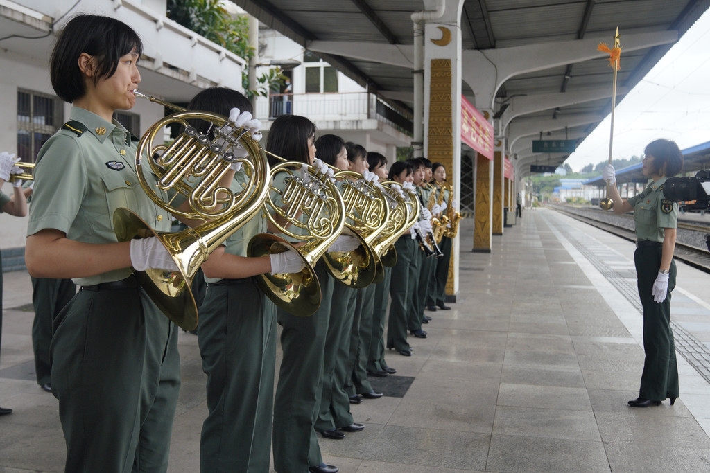 站台上,女兵军乐队演奏起一首《祖国不会忘记》,离别的歌声中退役士兵和送行战友们彼此拥抱、告别、合影留念,浓浓的战友情、依依不舍的离愁和深情的祝福笼罩着整座站台。“敬礼!”随着一声铿锵有力的口令,送行官兵和退伍老兵互相敬出“最后一个军礼”,用无声的语言向彼此郑重道别。