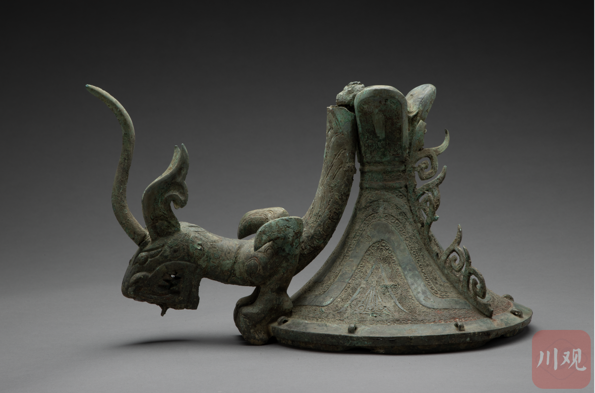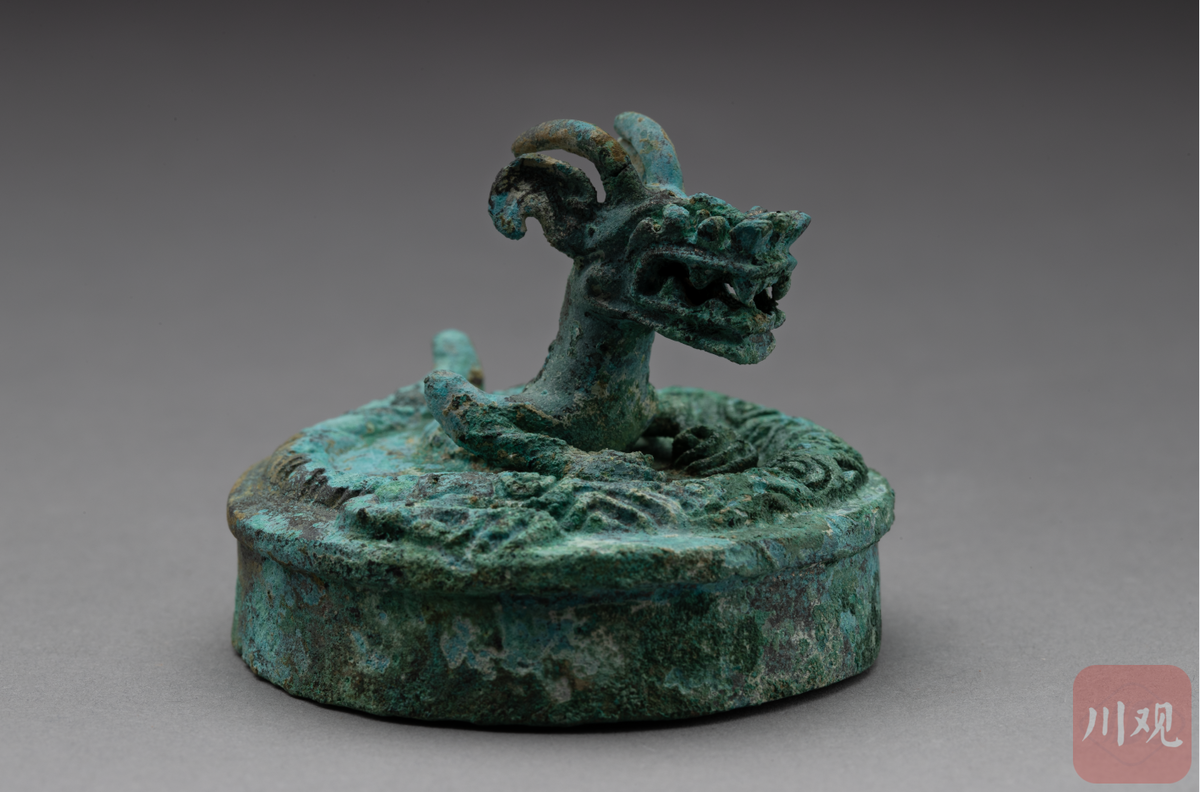 饰有龙头的青铜器,可能为某种器物的盖子或者底座