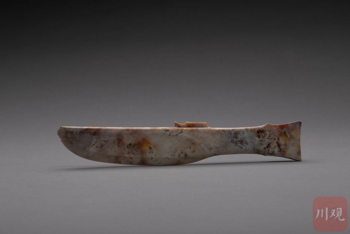 在6、7号坑,同样有让人大开眼界的新发现。6号坑的木匣子里,发现了一把玉刀,其形制和大小,与如今常见的西餐刀十分相似。刀背处刻划了类似鱼背鳍状的装饰,刀刃却十分锋利。负责5-7号坑发掘的四川大学考古文博学院教授黎海超表示,“玉器在古代一般都是作为礼器,没有实用价值,但是这把玉刀刀刃如此锋利,也许带有一定的实用作用。”在7号坑,一件覆盖在玉器之上的青铜网格,也神似今天的窨井盖。由于这件器物尚未提取,它的功能还有待最后确定。