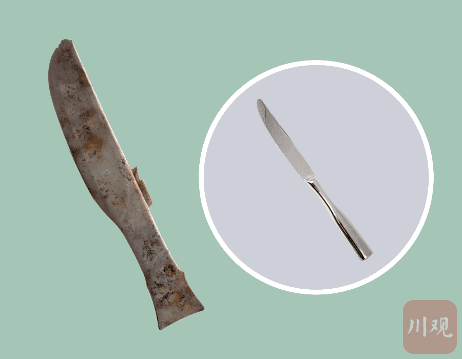 虽然这是玉刀,但我看到它的第一眼,直接联想到的就是现在的不锈钢西餐刀外型。咱们就直接说,这造型,该不该找现在的餐刀要外型专利?