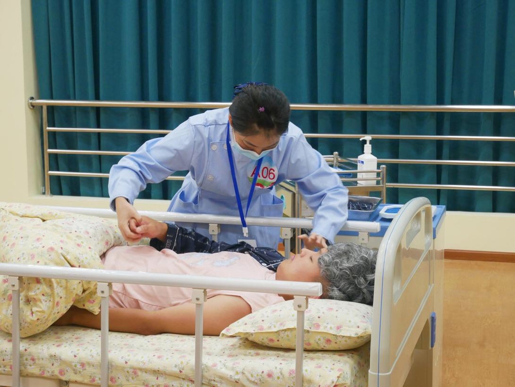 “刘奶奶,我先检查一下您的皮肤,待会儿给您拍背,我们每分钟拍背是120次-180次,每次3-6分钟。”养老护理员按照日常工作流程,进行现场演示。