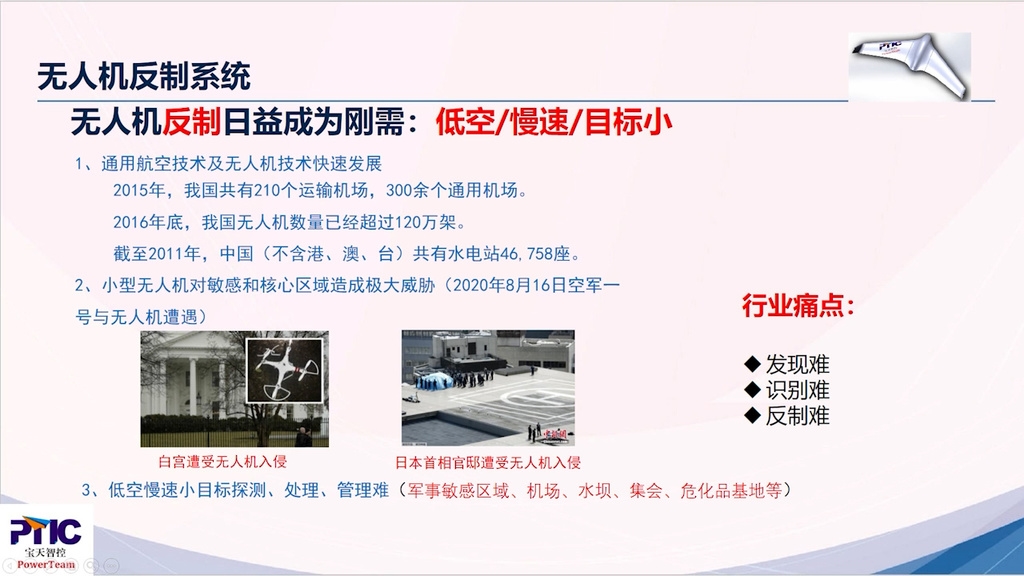 同时,针对机场等应用场景,该公司还推出了“无人机反制系统”,主要围绕小型无人机在飞行时呈现出低空、慢速、目标小等特点,对其监控存在发现难、识别难、反制难等痛点,通过目标识别算法,可在1-15公里范围内有效探测识别到无人机,再通过GPS或北斗信号干扰、无线电侵入,进而控制无人机,实现对无人机的反制。