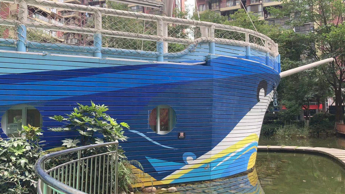 走进成都和美社区的首创二期院落,便能看见湖边上有个“海盗船”。打开船舱门,走进去,一个崭新的居民活动室就出现在眼前,十多位居民正围坐在一起开展手工钩花课。