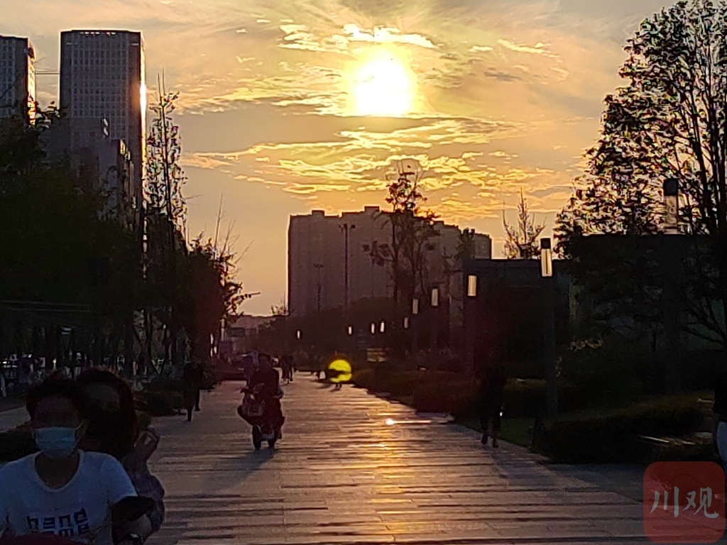 视频丨成都再现火烧云美景 市民驻足欣赏