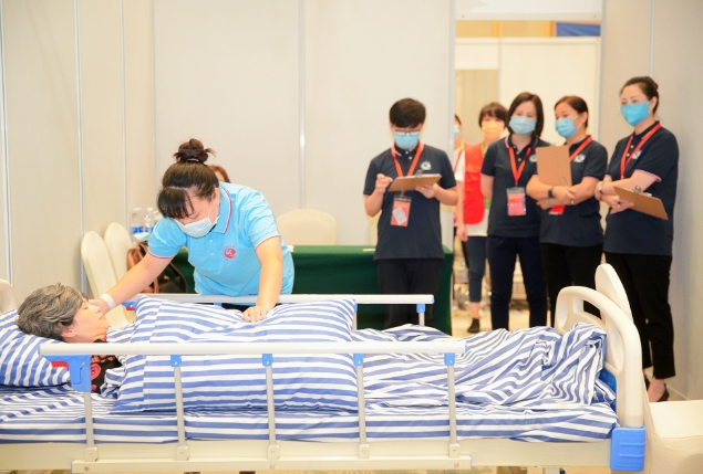 据介绍,本次大赛参照《养老护理员国家职业技能标准(2019年版)》,设理论比赛和实际操作技能比赛两个部分,总分100分。其中理论比赛成绩占总分的30%,涵盖职业指导、基础知识、生活照护、基础照护、康复服务、心理支持等内容;实际操作技能比赛占总分的70%,涵盖生活照护、基础照护、康复服务3个职业功能模块。
