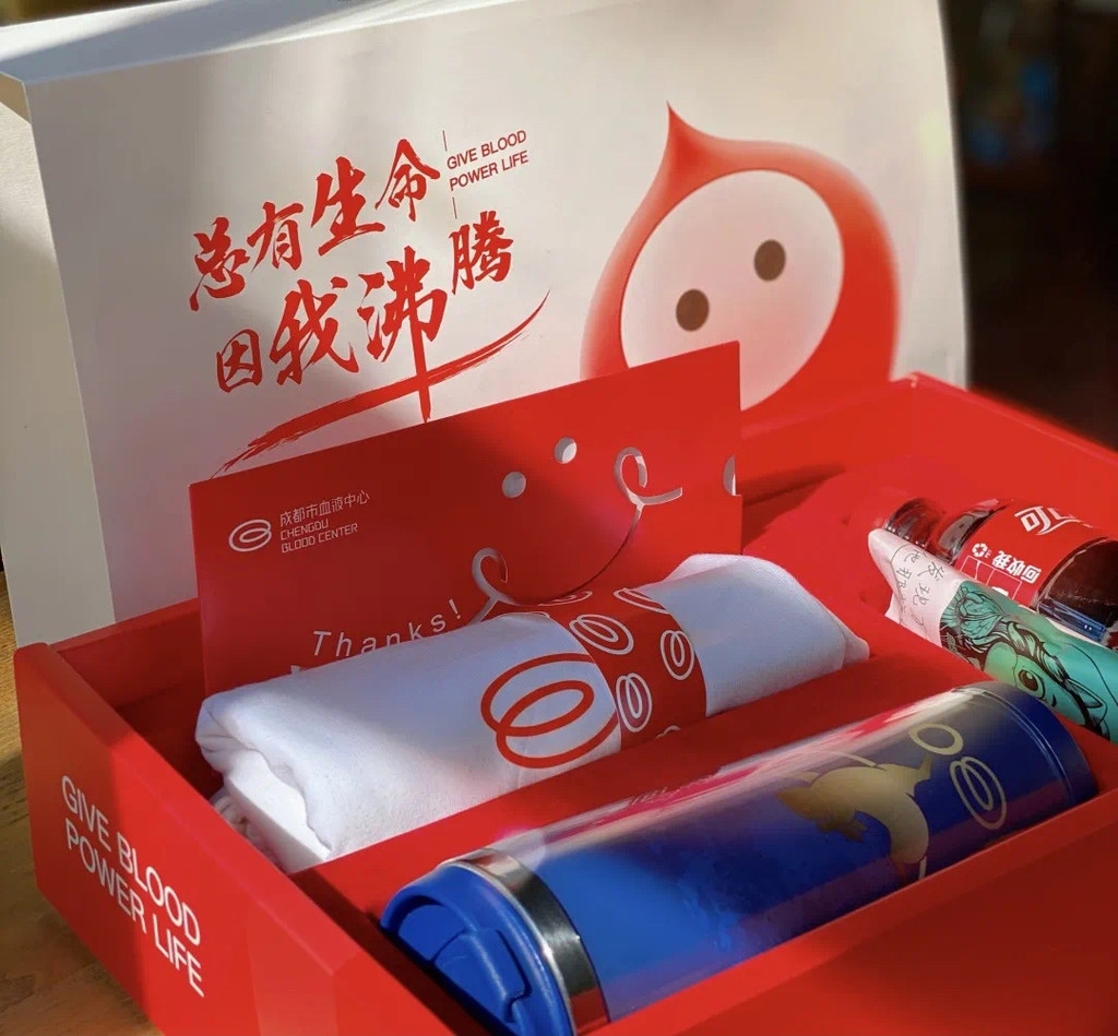 9月11日,成都市血液中心在成都市献血点全面启用了热血文创纪念盒,对原有献血纪念品进行了文创设计,这是为献血者准备的暖心仪式感,也是成都市无偿献血服务的又一创新举措。