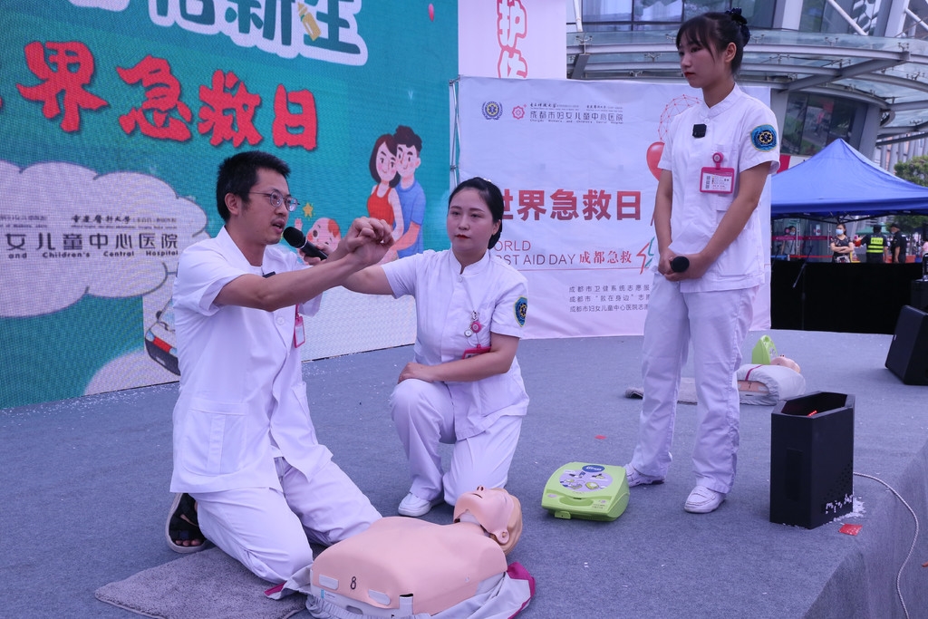 成都市急救指挥中心相关负责人介绍,本次“世界急救日”的主题是“做学校、社区的急救英雄”,成都市急救指挥中心精心组织成都市“救在身边”志愿服务队、11支区(市)县志愿服务分队和部分市级医疗机构共同开展形式多样的宣传培训活动,希望通过市、区两级联动开展系列活动,进一步提升成都市公众急救意识与技能、引导市民学习了解《成都市社会急救医疗管理条例》,呼吁大家重视急救、参与急救、配合急救,进一步促进成都市院前急救事业水平不断提档升级,推动全民健康融合发展,为建设健康成都、平安成都助力。