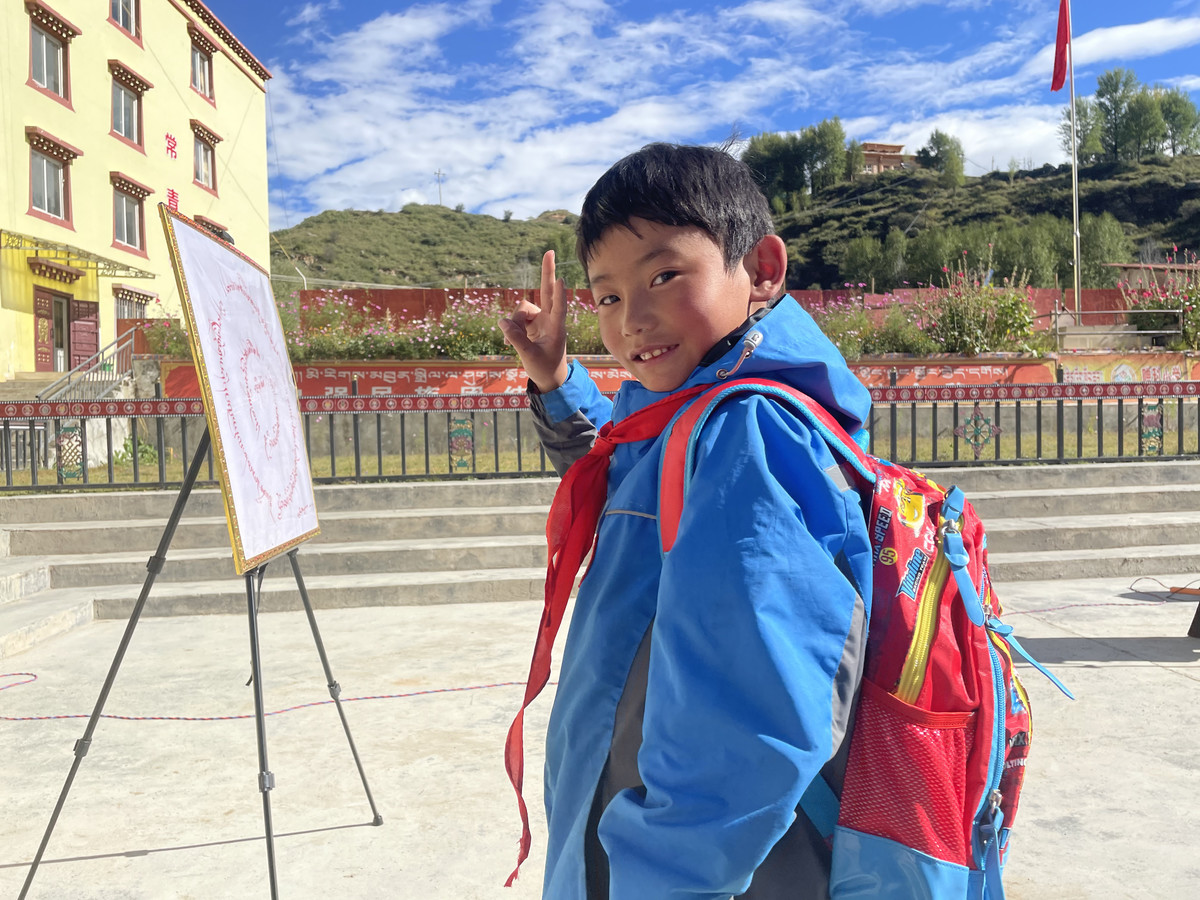 “不会忘记在大山外,有那么多关心、爱护我们的叔叔阿姨!我代表全校同学向大家承诺,将好好学习,树理想、懂感恩,努力成才回报社会。”白玉县赠科乡中心小学3年级的小姑娘降拥青章在捐赠仪式上说。