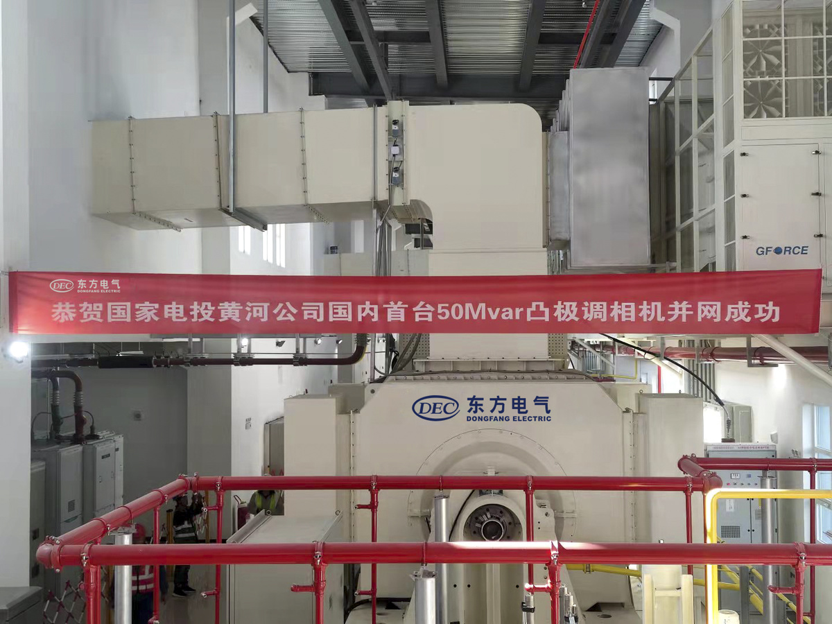 国内首台50Mvar分布式凸极调相机并网成功。东方电机供图