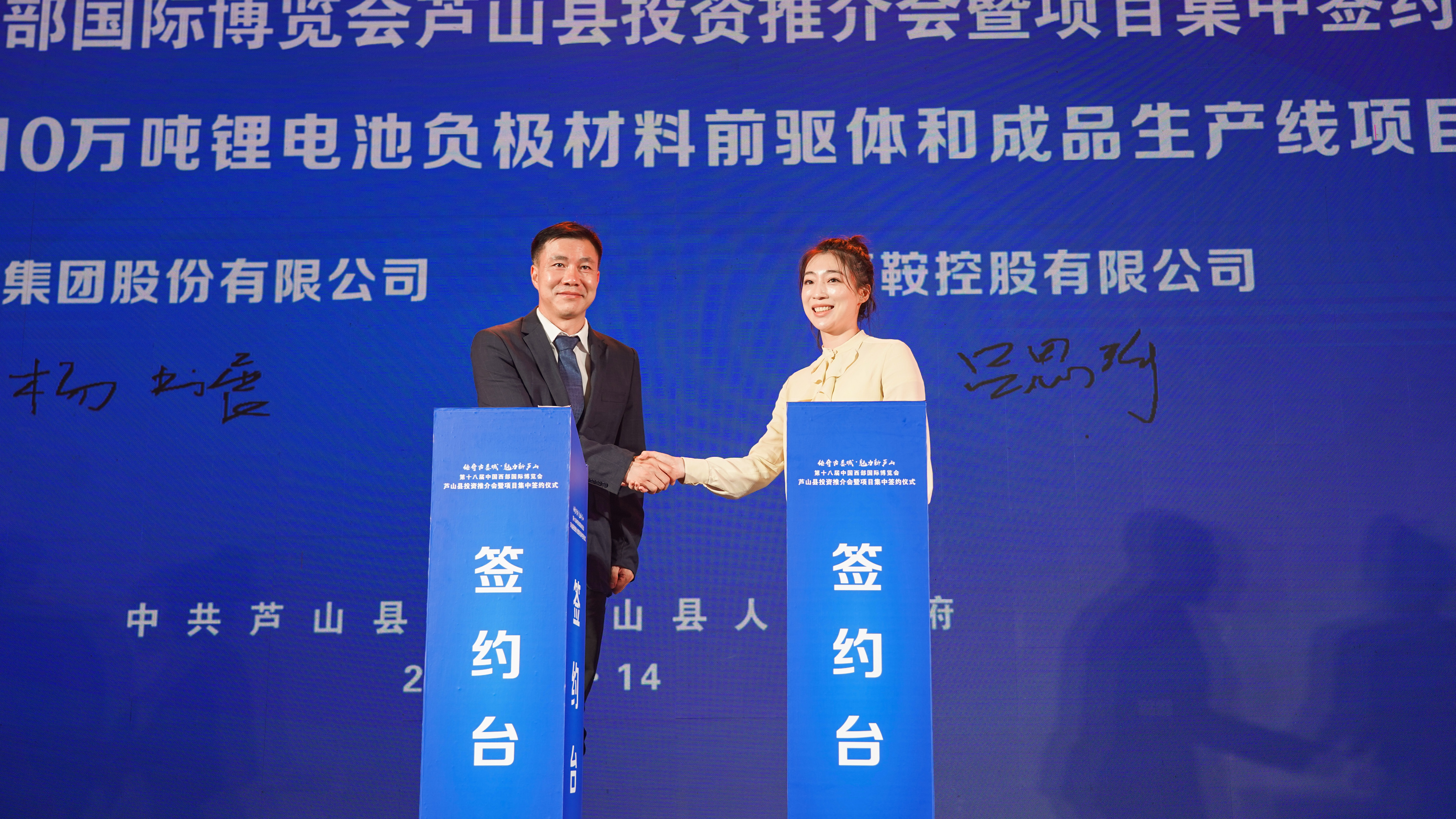 其中,贝特瑞集团股份有限公司与福鞍控股有限公司现场签约,携手在芦山县建设10万吨锂离子电池负极材料一体化项目。“与芦山县合作,不仅是因为雅安水电资源富集,更是看重芦山推进工业经济快速崛起的决心和信心。”贝特瑞新材料集团公司董事长贺雪琴表示,“从一系列招商引资新举措、不断创优的投资环境,可以看出芦山‘亲商、安商、重商、富商’氛围日益浓厚。”