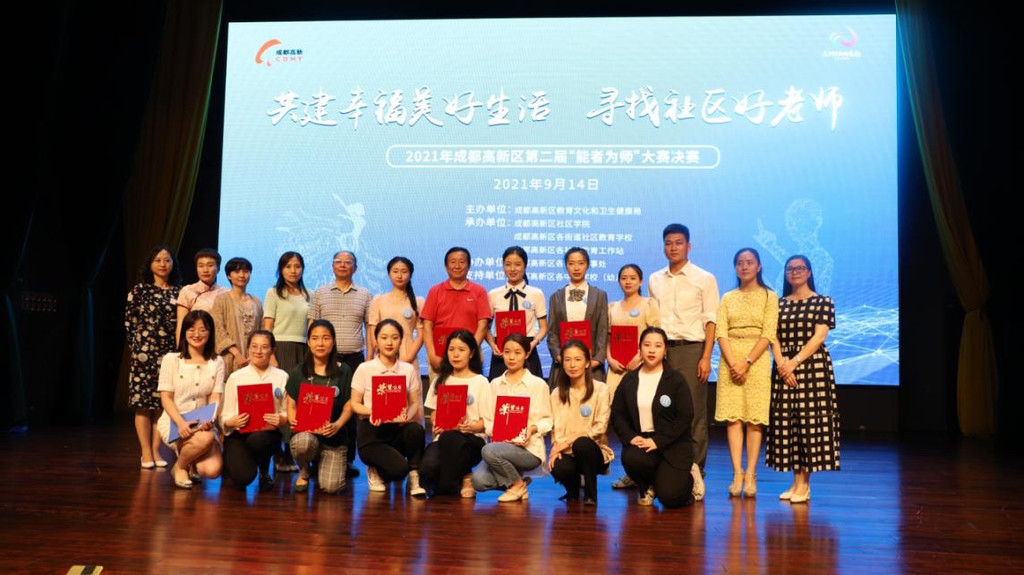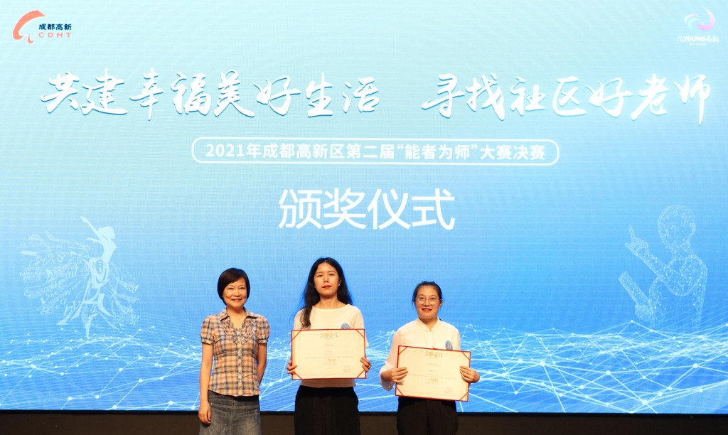 9月14日,2021年成都高新区第二届“能者为师——寻找社区好老师”大赛决赛在该区教育发展中心学术报告厅举行,经综合评比,最终评选出一等奖1名、二等奖2名、三等奖3名、优秀奖4名及银发达人1名,分别获得荣誉证书及聘书。
