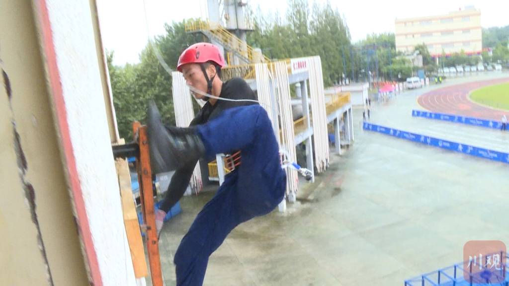 四川省消防行业职业技能大赛是一场专业素质和技能水平的实战比拼。四川在线记者了解到,本次大赛集合了来自省内的21支参赛队伍,当天的竞赛内容为攀登挂钩梯。竞赛现场,参赛队员按分组顺序携挂钩梯跑至训练塔处,将梯钩挂于二层窗台,并逐级向上攀登,直至进入第四层窗内,双脚着地结束操作,比赛成绩评定采用电子计时方式,同时对参赛者的操作规范进行判定。