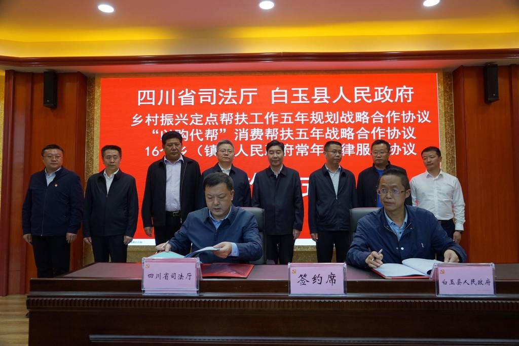 9月14日,在省司法厅定点帮扶白玉县乡村振兴工作座谈会上,双方签订了《乡村振兴定点帮扶工作五年规划战略合作协议》《消费帮扶五年战略合作协议》《常年法律服务框架协议》。白玉县政府就巩固脱贫攻坚成果,全面推进乡村振兴工作情况作了简要汇报。