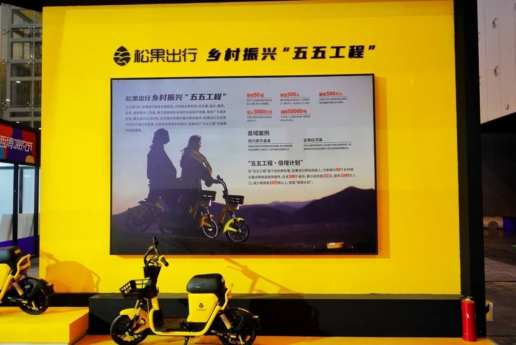 在西博城3号馆的深处,一排排黄黑配色的电单车,在一众白蓝配色的展馆和琳琅满目的展品中格外显眼。这是松果出行打造的一款“黑科技”共享电单车。在业内,它因出色的爬坡性能而被称为“风火轮”。