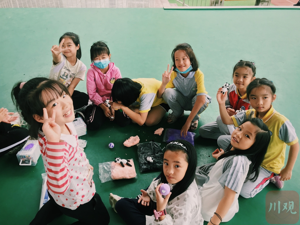 “好玩!交了新朋友,还上了有趣的手工课!”用粘毛彩泥的小手掌擦了一把汗,刘瑶笑着说。