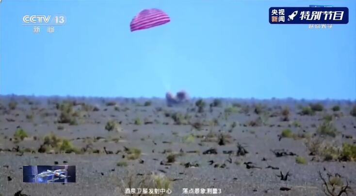 四川航天川南火工技术有限公司的点火器领命出战,它准确点燃弹射装置,掀开抛伞舱盖,让美丽的巨伞在空中绽放。降落伞牢牢拽住飞船返回舱下降,速度还是很快,在离地面一米的距离,点火器再次发挥作用,引燃反推发动机,施以返回舱反推力,给航天员稳稳的“幸福”,他们安全回家啦!
