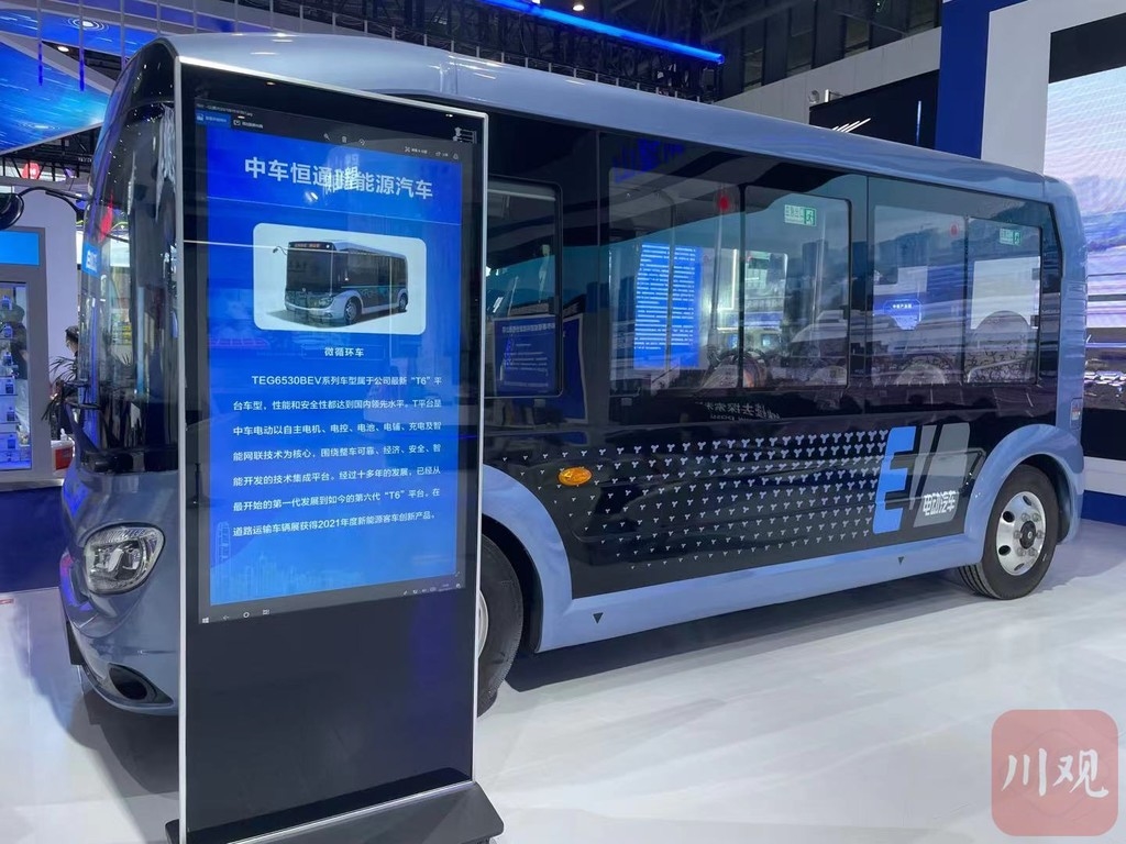 在璧山展区,一辆小巧的蓝色巴士吸引了记者的眼球。据了解,这辆车是重庆璧山生产的“微循环电动公交车”,“虽然它是一辆巴士,但车身长度仅有5.33米,外观非常乖巧,它的最小转弯半径仅有7.5米,它非常适合农村公交和城市狭窄道路的应用场景。”参展商向记者介绍,“微循环”的含义通俗来说,就是这辆车可以像社区大男孩一样奔跑在城市巷道,为城市交通寻找开始一公里和最后一公里的解决方案。