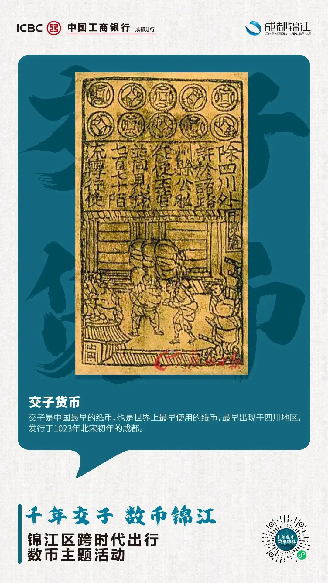 结合纸币历史的“千年交子”和开创未来的“数字人民币”,更好地展现数字人民币跨时代的意义和魅力。“千年交子 数币锦江”活动中,选手通过积累1万步步数进行“线上打卡”或到线路所示地标点进行“线下打卡”点亮地标,每点亮一个点位的地标,即可获得隐藏在线路中的中国货币卡片。点亮所有地标集齐7张货,币卡片即完成比赛。