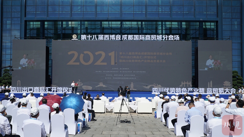 9月19日,以“川品出海新平台,开放发展新赛道”为主题的“四川出口商品汇”开馆仪式暨2021四川优势特色产业精品贸易大会,在第十八届西博会成都国际商贸城分会场举行。